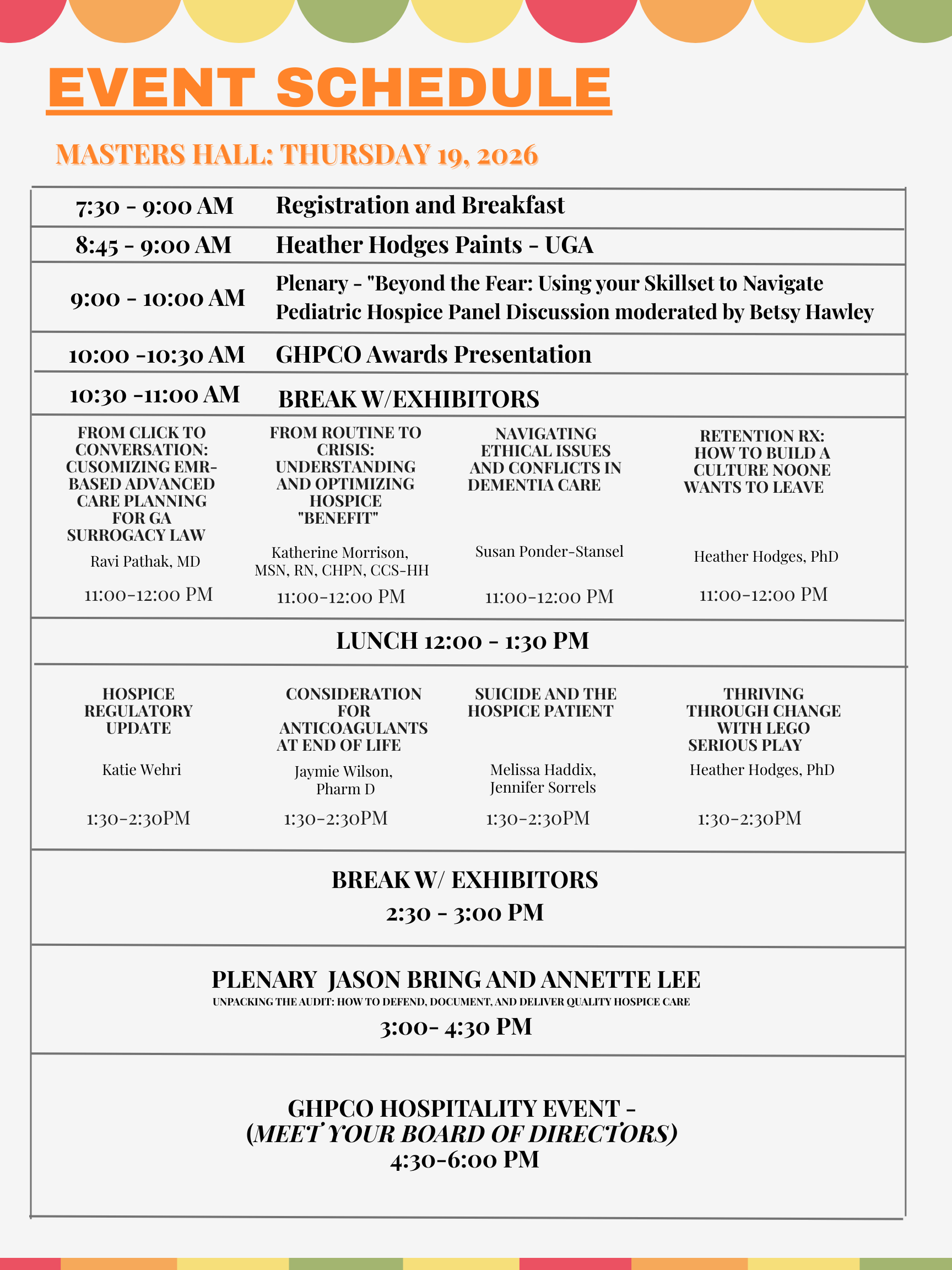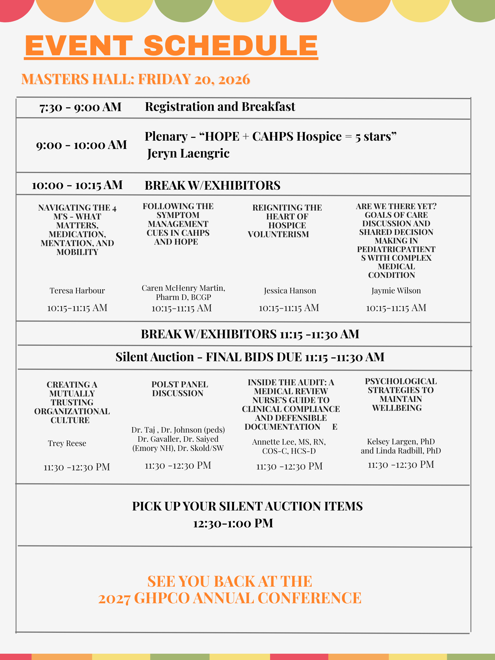 Nursing CEU'S will be provided. GHPCO is an approved provider of continuing nursing education by the Alabama Board of Nursing Practice, #ABNP-1402, expires 10/06/2028.